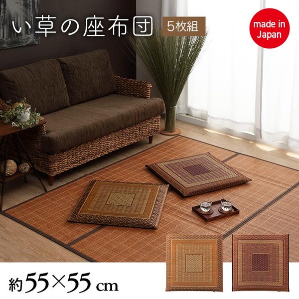 ■商品スペックサイズ:約55×55cm 5枚組素材:側地=い草(九州産) ※紋織(縦糸が袋織の本数) 中材=ポリエステル100%【固綿40mm】原産国:日本製(純国産)【特記事項】画像のカラー・サイズ・セット内容とは異なる場合がございます。