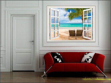 オーダーメイド 【窓 ウィンドーシリーズ防水・(横長)】ウォール ステッカー ポスター シール 裏が透けない 自然 はがせる 壁紙 壁シール |お風呂 風景 はがせる壁紙 壁|ウォールステッカー 風景 海 トリックアート 防水